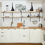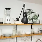 - ❓Există o bucătărie disponibilă la apartamentul spațios pentru oaspeți?Da, apartamentul spațios dotată cu o bucătărie complet utilată și oferă ceainic electric, mașină de spălat vase și filtru de cafea/ceai.